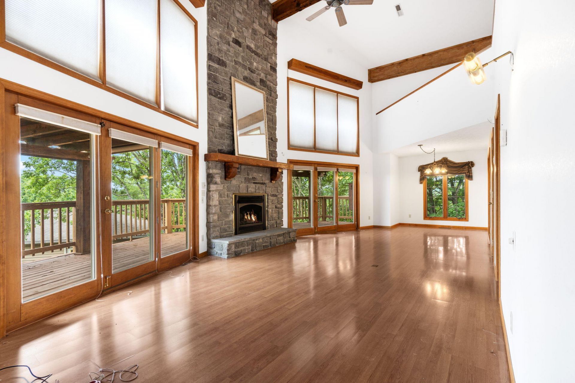 AN AWESOME & UNIQUE METAL LOG-SIDED HOME SITTING ON 1.35+/- acres NESTLED IN THE TREES & WITH A TERRIFIC LAKEVIEW! This 3BR/4BA home with detached 21X28 two-story building previously a woodworking shop. w/room to store your boat has it all. New HVAC installed August 2025. HOME with a Boat slip Available to purchase. Walk- in entry with a walk-in sunroom for viewing nature & step inside home with a massive ceiling to floor fireplace in the living room meant for entertainment w/sliding doors to the decks both opened & covered for viewing the lake & entertaining. One end of Living Room is opened to a dining area with windows to the back & it is just off a huge kitchen w/ample cabinets w/all appliances to stay, a large walk-in pantry, a separate utility room w/ deep sink & off LR is a1/2 half bath. The Master BR offers spacious room w/enough room for a sitting area or small office in the Bedroom. The Master BA has double sinks, a walk-in shower & steps up to the jetted tub. Side door off kitchen is a closed deck & door to the 2-car detached garage wi/pull down ladder & storage. Going upstairs at the house find 2 nice sized Guest BR's & Jack & Jill BA in-between along w/an area for entertainment for your guest to relax overlooking the living room. In the Lower level find the large family room w/the pellet free-standing Fireplace w/great area designed for your office & another 1/2 bath. Step out the door onto a walkway to the detached 21X 28 building w/the top floor perviously been used as a wood-working shop & the lower level is a 2- car garage or place to store your boat or anything else. . Oh the Decks...well check out the views from the main level covered or uncovered decks & choose your spot for viewing Table Rock Lake. And, to get on Table Rock Lake just know there is a 10X24 Boat slip available for $$$ is just a hop (minutes) away. Home warranty on this house ready for the next Lake Owner!!!