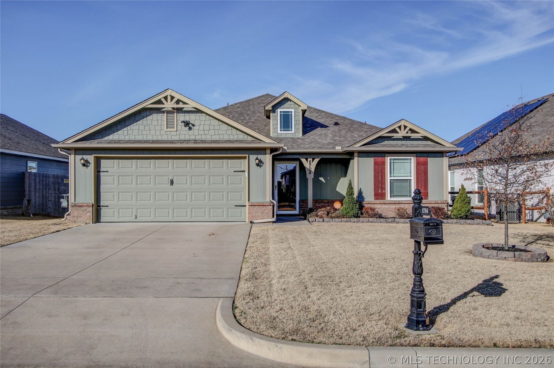 FOR LEASE. Newer home in Broken Arrow schools near The Club at Forest Ridge. Kitchen opened to the living room for easy entertainment! New carpet in living room and master bedroom. Split floor plan separates the Master from the 2 other bedrooms for privacy. Covered patio. Great neighborhood park & splash pad. Dogs under 20lbs (max 2), full grown, house broken will be considered w/a pet fee & a pet deposit. No cats. No smoking or vaping. Great location!
